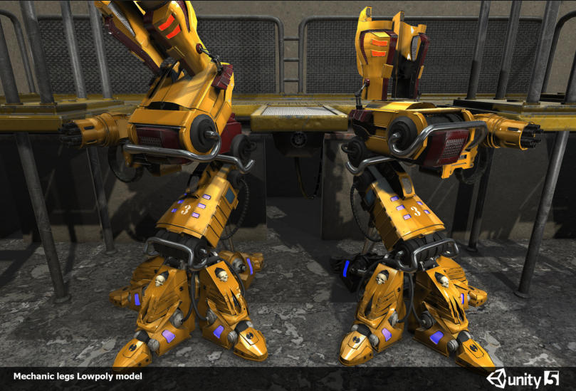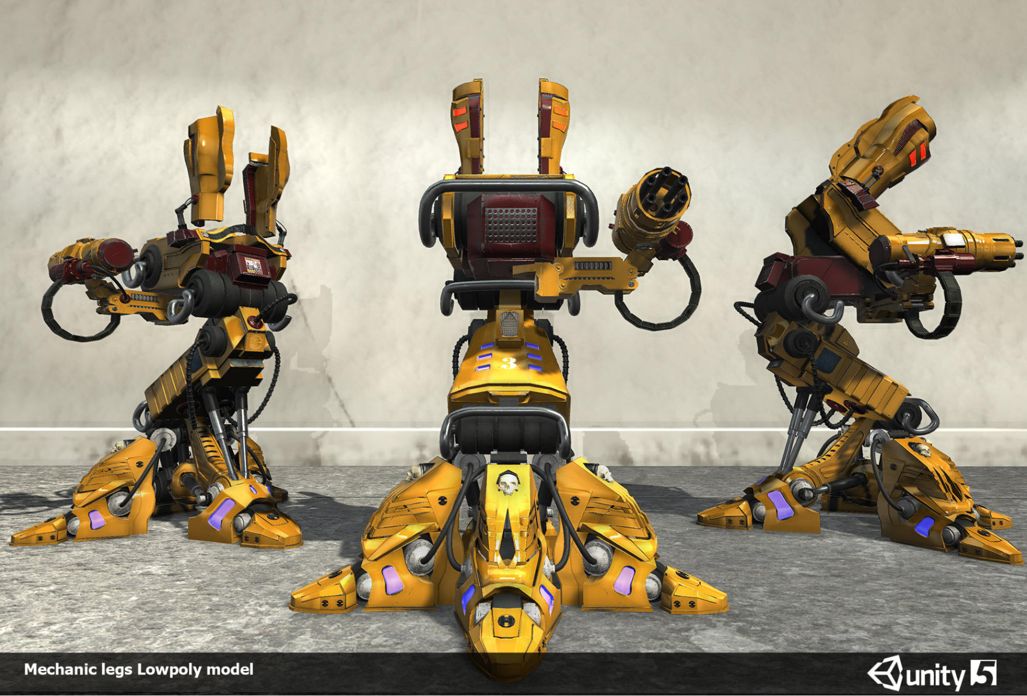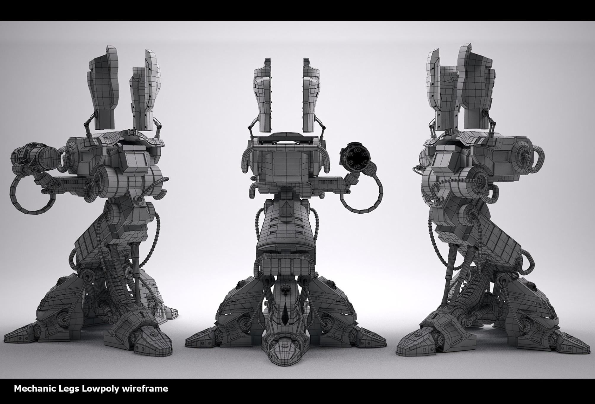First of all it was only a funny idea but after thinking a little bit longer I thought: “...hey why not, this could be nice...” and so I realized my next project, the “Mechanic Legs”. Those legs are made for maybe hard industrial work or in this case to support soldiers in the fight. On the side, the lag has an adaptive system for e.g. a jackhammer or in my case a little Mini gun. Keyfacts:•Lowpoly model (56k Polygons), physically based textures (2048²), rendering Unity 5 and inside 3DS Max with Mental ray (wireframe model)•Used programs: 3DS Max 2015, Photoshop, Quixel Suite (NDo, DDo) and Unity 5